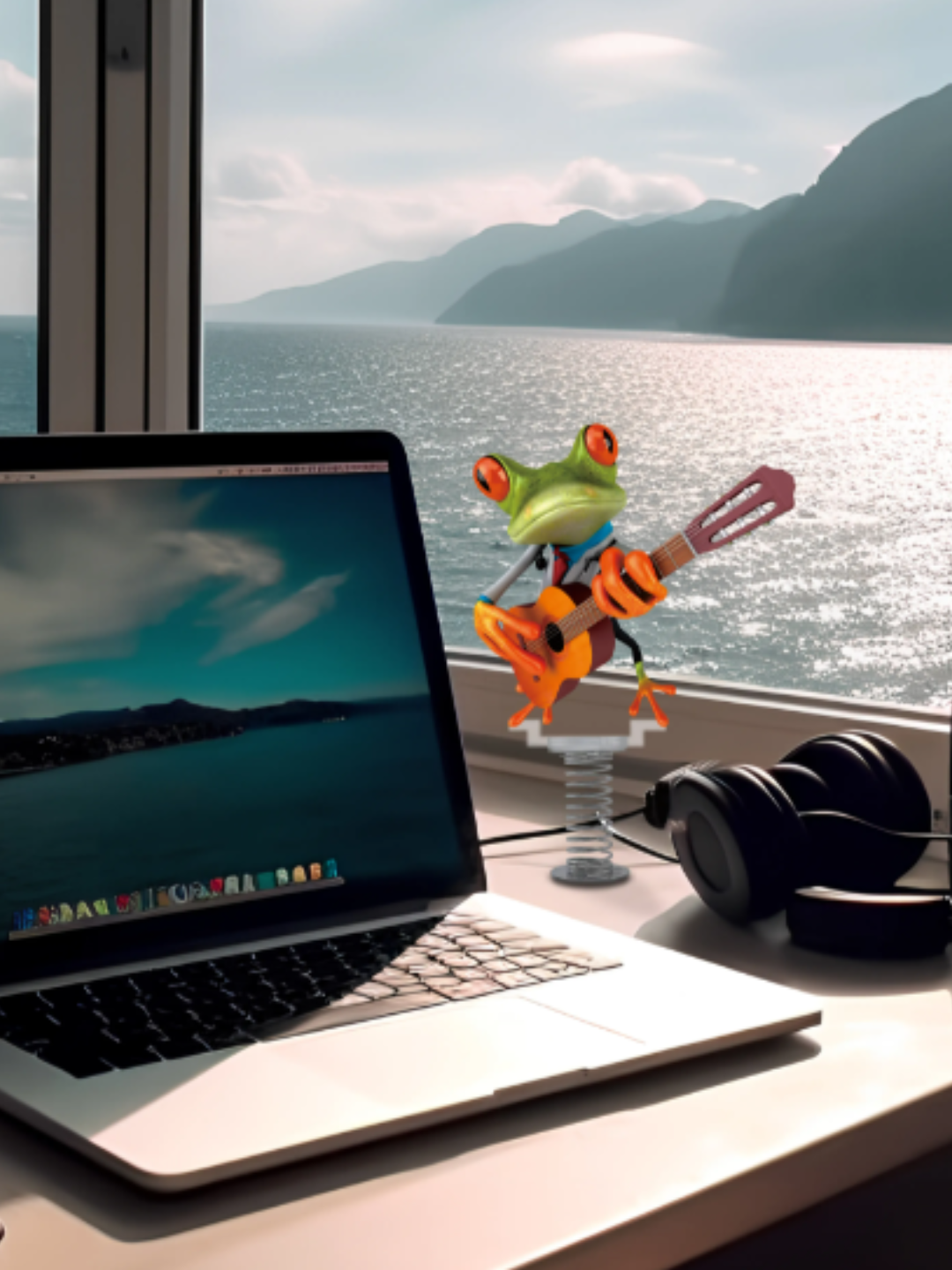 Adorno móvil para escritorio o tablero del auto -Rana con guitarra