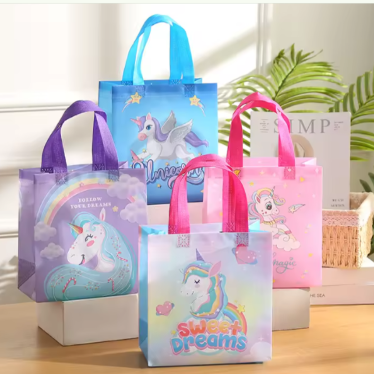 Bolsas de regalo chica en pvc reutilizable 23x22cm -Pack 4 -Diseño Unicornio