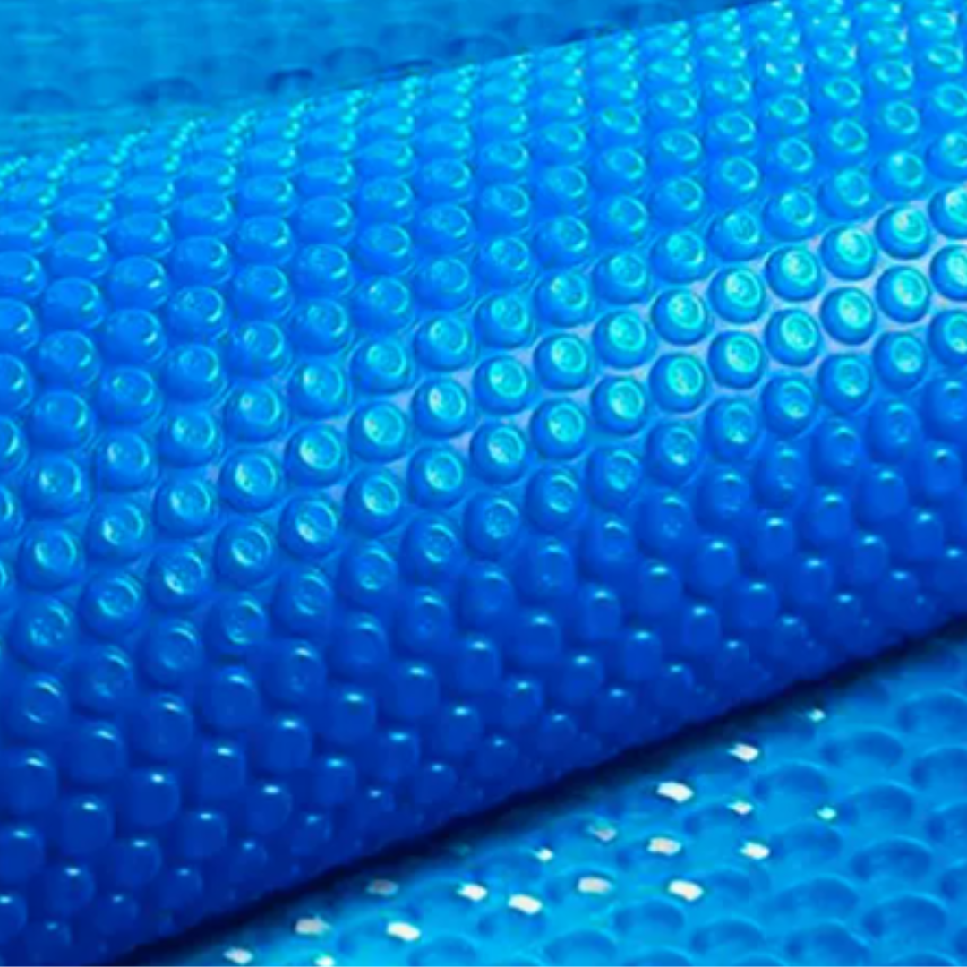 Gracias a su diseño tipo “burbujas”, la manta crea una cámara aislante entre la superficie del agua y el ambiente, reduciendo la pérdida de calor durante la noche y manteniendo estable la temperatura del agua.