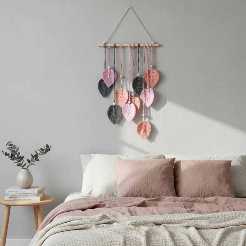 Embellece y dale un toque unico a las paredes de tu hogar con el tapiz en macrame Hojas, vienen en varios colores para que elijas los que van mejor con tu espacio.