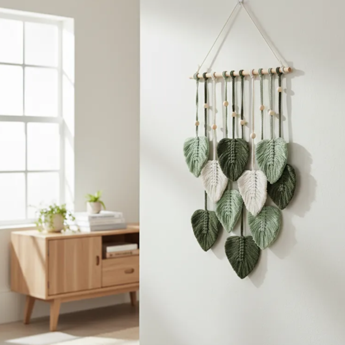 Tapiz colgante macramé – Diseño: Hojas